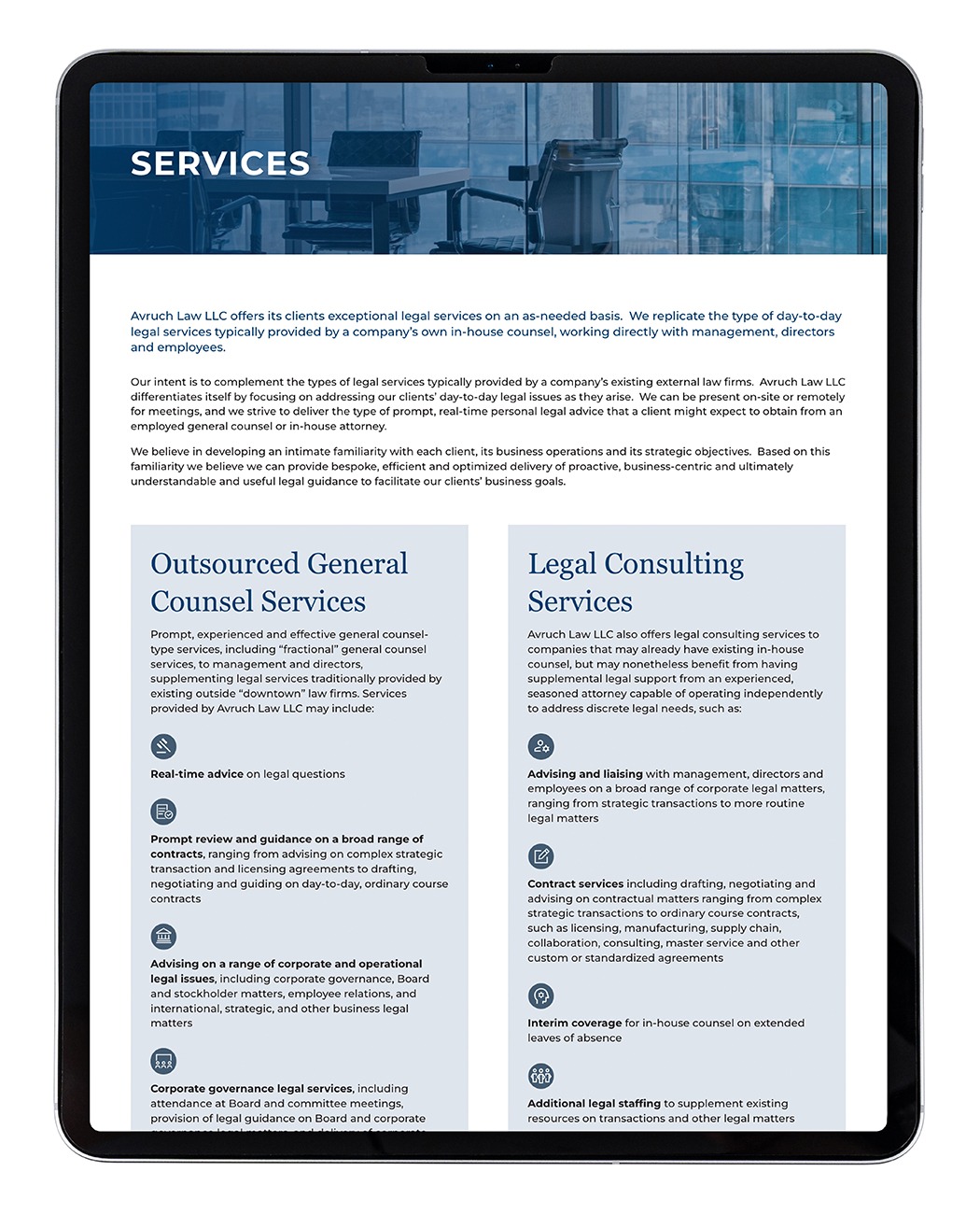 The result is a cohesive, sophisticated brand and a powerful online platform that positions Avruch Law as a leader in their field.
