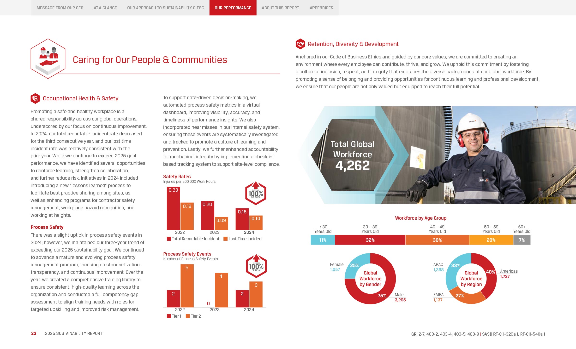We partnered with a global leader in specialty chemicals and performance materials to develop and deliver their 2025 Sustainability Report. This essential document presents the company’s comprehensive sustainability strategy and outlines the measurable, tangible progress made toward its long-term sustainability goals. The report highlights operational innovations and key advancements and is designed as a resource for all key stakeholders—including investors, customers, suppliers, and employees. It provides detailed performance metrics and a clear view of the company’s commitment to driving innovative solutions for a more sustainable future.